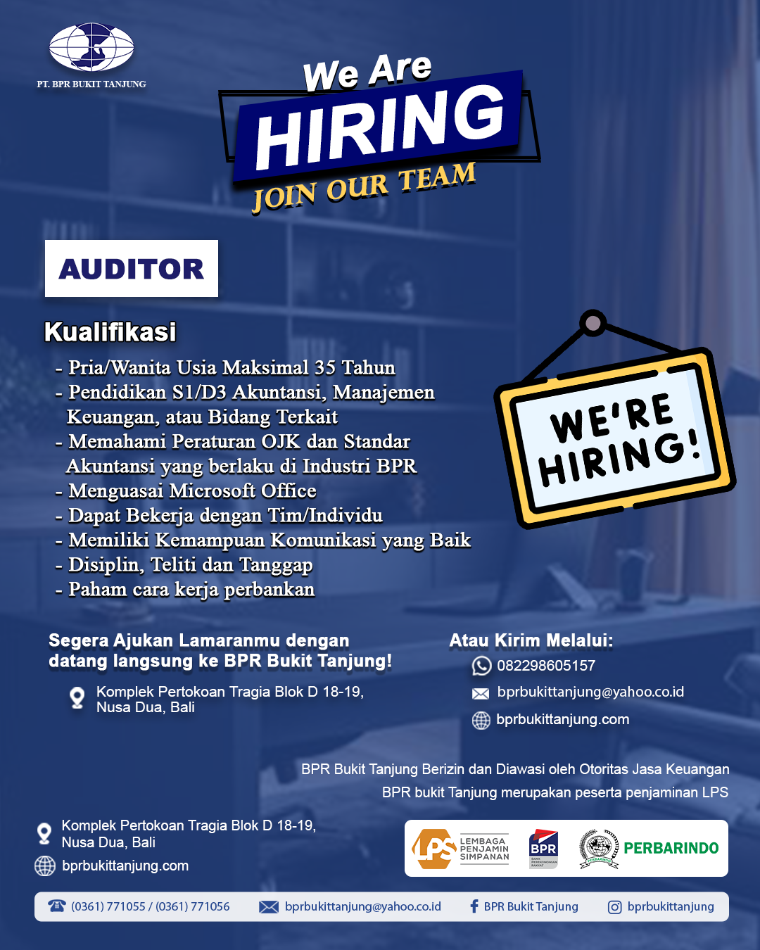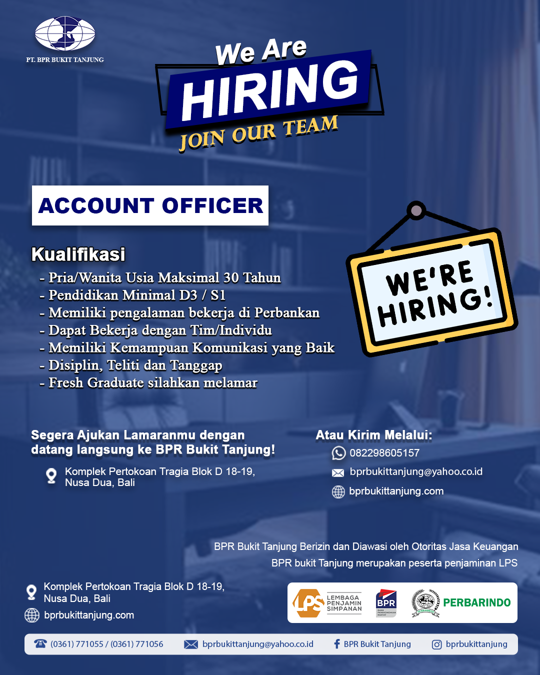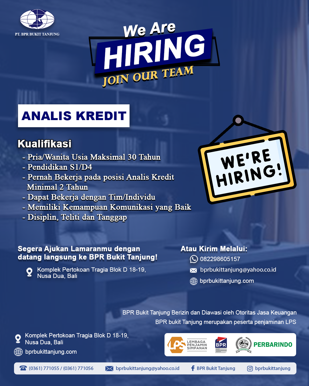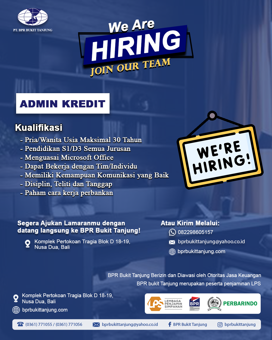 Segera Ajukan Lamaranmu dengan datang langsung ke BPR Bukit Tanjung